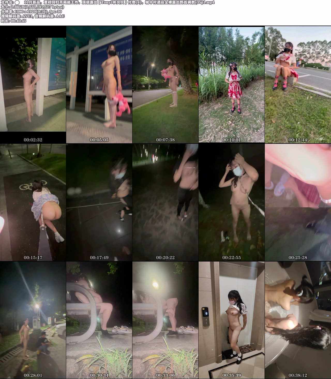 11月新品,重磅回归开局就王炸,顶级露出【TonyJ和贝贝】付费(4),城中村酒店全裸露出野战调教(3V)[5860MB/MP4/WF]