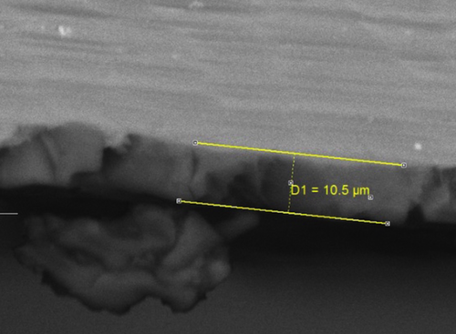 电子显微镜图像显示,苹果iPhone 6S机身外壳上覆盖着大约10微米厚的铝阳极氧化膜,帮助防止腐蚀。阳极氧化层也使苹果可以使用染料推出不同颜色的苹果iPhone 6S机身外壳。