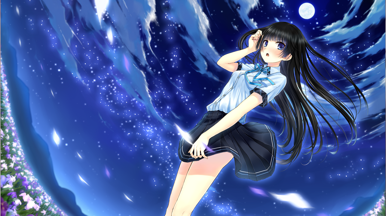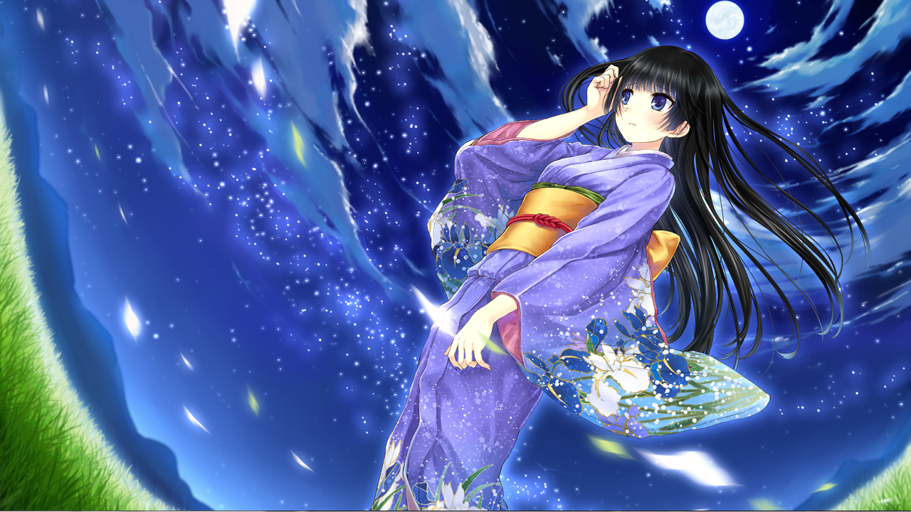 空无一物的草原之中、薄衫披肩仅仅一人的少女寂寞的遥仰着半空之月。